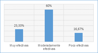 Efectividad de estrategias de costeo: se puede observar que la mayoría de las empresas perciben sus estrategias de costeo como moderadamente efectivas, con un 60% de las respuestas en esta categoría. Esto propone que, si bien las estrategias actuales pueden estar cumpliendo con ciertos objetivos, aún hay espacio para mejorar su eficacia. Por otro lado, un 23.33% de las empresas consideran que sus estrategias de costeo son muy efectivas, lo que indica un grado considerable de satisfacción con sus prácticas actuales. Sin embargo, es importante destacar que un 16.67% de las empresas encuestadas las consideran poco efectivas (Figura 4).