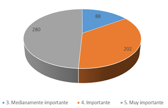 · La mayor cantidad de puntos otorgados se concentraron en las escalas de: muy importantes e importantes tal como se muestra en la Figura 1.