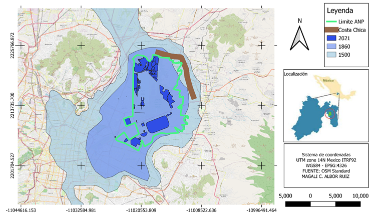 Figura 1. Transformación del territorio palustre rururbano del lago de Texcoco.