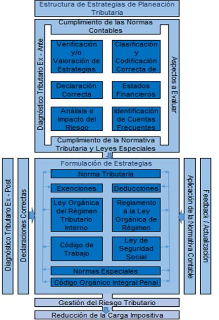 The present investigation has as an Analysis Unit the company F1 Autos Cía. Ltda, Belonging to the automotive sector, dedicated to the intermediation of used vehicles. The study was carried out with the purpose of formulating tax strategies based on practical and real facts that arise from business operations; through a multimethodic investigation; non experimental; with cross-sectional and descriptive approach; Likewise, through the use of the interview, survey and documentary review, tax information was collected, financial statements and tax returns were analyzed; With this, the findings that were contrasted with the tax regulations and special laws were obtained, in order to determine the taxpayer's compliance, with emphasis on deductions, exemptions, income and expenses, concluding that the taxpayer can plan their tax obligations, benefiting legally, reducing the tax burden, controlling fiscal, social, labor and criminal risks.