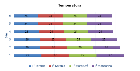 El método regular para la evaluación de azucares en industria es °B, durante lo cual solo presento una pequeña variación en la Naranja y Toronja en el segundo y tercer día.
