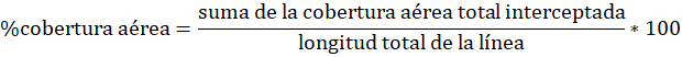 · Cobertura aérea. Se aplicó el método descrito por Morocho (2020), en el cual se utilizó una piola para trazar un transecto lineal en cada unidad experimental y edad de corte. Con este método se pudo medir el espacio aéreo ocupado por el maní forrajero, y se calculó mediante la siguiente formula: