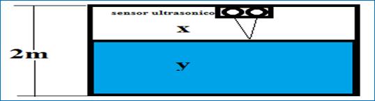El volumen de agua existente en el tanque de almacenamiento se mide por medio un sensor ultrasónico (Pérez de Diego, 2015). El funcionamiento del sensor ultrasónico es medir la distancia entre él y el objeto en este caso el agua, pero el valor que refleja sería el espacio libre como se ve en la Figura 4, es por eso que se aplicara una fórmula: