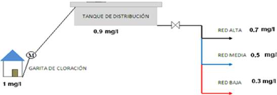 La toma de las muestras se realiza en horas de la tarde y pasando 1 día después de su modificación de la dosificación debido a que en 24 horas el líquido vital fluye por todo el sistema permitiendo tener muestras exactas como se ve en la Figura 15, el cloro lleva solo 30 min para garantizar una desinfección satisfactoria.