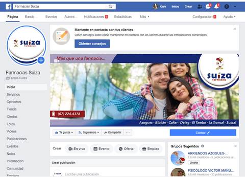 El objetivo principal de esta estrategia es utilizar los medios digitales como son las redes sociales, y otras aplicaciones que brinda el internet para mantener informados a los clientes de cadena de farmacias suiza, de la misma manera se pretende fomentar la comunicación mediante los mensajes en línea para solventar cualquier duda, inquietud o requerimiento que pueda tener el usuario. Como se observa en la figura 8, se comunica a los clientes el horario de atención y números de contacto para facilitar el pedido de los productos a domicilio.