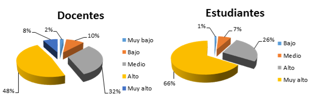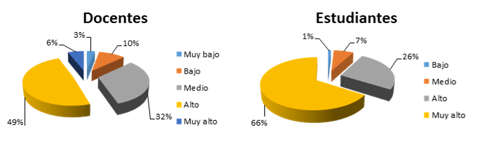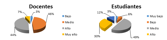 Haciendo un análisis estadístico entre docentes y estudiantes ante esta nueva forma de enseñar online, se puede observar que los docentes y estudiantes manifiestan que la enseñanza impartida por estas herramientas tecnológicas tiene un nivel alto debido que las clases son claras y precisas.