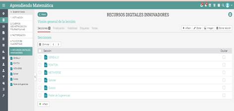 Figura 3. Clase Aprendiendo Matemática y recursos creados en una lección. Fuente: Elaboración Propia