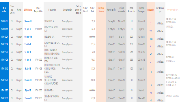 Figura 5. Matriz de órdenes de compra.