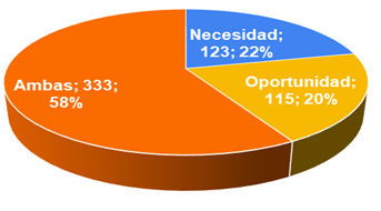 En este contexto, el emprendimiento por oportunidad determinado como dinámico está estrechamente relacionado con países industrializados (Reynolds, 2002) tiene un impacto favorable en el desarrollo económico estableciendo una transformación cualitativa dentro del conglomerado de actividades emprendedoras (Acs & Amorós, 2008). Por otra parte, el emprendimiento influenciado por la necesidad ha originado una controversia en cuanto a su desarrollo, cuestionado su contribución al crecimiento económico, y su relación fuerte con la pobreza, sobre todo por estar localizado especialmente en naciones subdesarrolladas (Hinojosa-Martínez & Albornoz-Pardo, 2013). Sin embargo, favorecen a que una economía se mantenga cuando está experimentando un incremento en su tasa de desempleo (Block & Wagner, 2010).