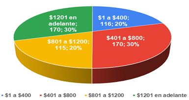 30%, 170 entrevistados produce tanto $401 a $800 o sea 2 SBU, así como $1200 y