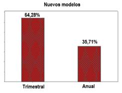 En cuanto a espacio geográfico, casi la totalidad de los directivos (97.6%) señalan como mercado meta a la provincia del Azuay. También definen la actualización de los productos con nuevos modelos (64.29%) de forma trimestral. Aunque no se representa en la gráfica, resulta significativa la percepción sobre quiénes son los principales competidores. En este sentido la mayoría de los directivos señalaron a las tiendas con productos importados como principales competidores, lo cual se corresponde con la tendencia a partir de la globalización y las políticas públicas de liberalización de los mercados.