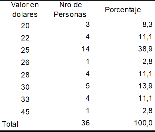 Realizado un análisis de costos para calcular el valor de producción se establece un precio de venta al público único de $35,00 por cuanto las percepciones de costos de producción no suelen ser precisas y recaen en fallas del mercado como la competencia imperfecta.