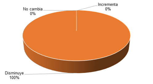 Es la primera vez que el sector camaronero del Ecuador y del mundo se ve afectado por una pandemia, en este caso la del Covid-19; si bien este virus no afecta al producto como tal, afecta a los hábitos de consumo, la oferta y la demanda se ven condicionadas por las medidas de aislamiento y movilidad impuestas para contener la propagación de los contagios, ocasionando que los principales mercados internacionales cierren sus puertas a la importación del crustáceo marino. En este sentido, el 66% de los gerentes consultados afirmaron que la producción ha disminuido en su totalidad, un 7% indicó un aumento y el 27% indica que se ha mantenido en niveles similares a los generados antes de la pandemia. La Figura 4 muestra los resultados mencionados.