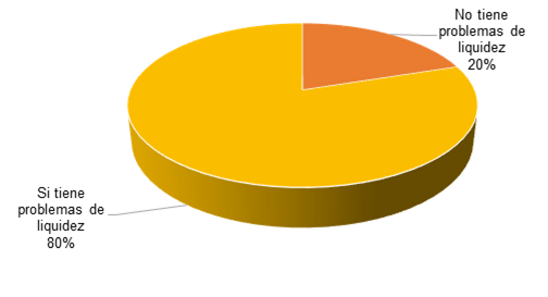 Ante la recesión económica generada por el Covid-19, las respuestas de los gerentes del sector camaronero se canalizan hacia decisiones estratégicas que buscan generar oportunidades ante la adversidad. Si bien es cierto, hay que contar con los suficientes ingresos que generen liquidez para cumplir obligaciones bancarias, los resultados obtenidos indican que un 66.7% de los encuestados tienen crédito con la banca y el 33.3% dice que no posee créditos. La siguiente pregunta que hace referencia al cumplimento de pago de créditos realizados con la banca, tiene por respuesta que el 80% presentan problemas de liquidez para cancelar sus obligaciones financieras, en cambio el otro 20% indica que logra solventar sus obligaciones (ver figura 5).