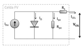 emula la corriente fotogenerada (depende de la radiación solar); 2) diodo de