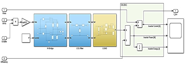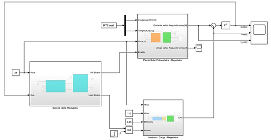 ; y 3) carga AC a la salida del inversor. Además, se añadió la etapa de