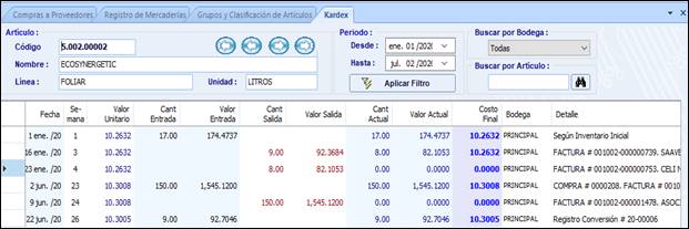 Figura 4. Valuación de inventarios sistema de control promedio ponderado.