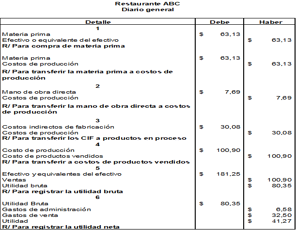 Cada etapa del proceso productivo es indispensable para obtener el costo total del producto terminado. La implementación de este tipo de proceso en un restaurante necesita una adaptación prolija y más simple, ya que las órdenes de producción son inmediatas; el estudio de los costos se realiza al finalizar el mes. Una vez que se obtengan los costos de cada una de las etapas de la producción, será más sencillo obtener el costo del producto terminado. Los elementos que se analizan en esta fase se describen de la figura 5.
