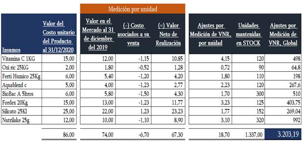 Figura 2. Estimación del valor neto de realización de inventario