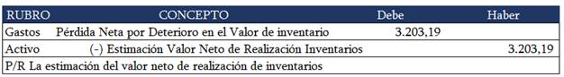 Figura 3. Asiento contable de estimación del valor neto de realización de inventario
