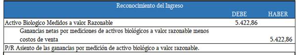Figura 6. Asiento contable de las ganancias en medición de activo biológico.