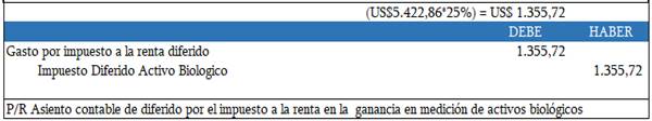 Figura 7. Asiento contable del impuesto diferido por la tasa impositiva de las ganancias en medición de activo biológico