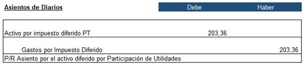 Figura 10: Asiento contable de activo diferido por la tasa impositiva por participación de utilidades.