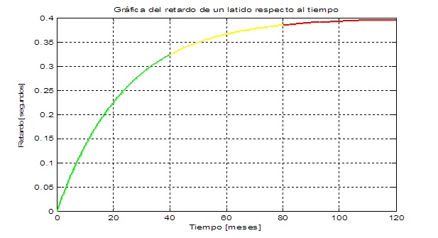 El reconocimiento se centra en el intervalo QT del eje horizontal de ECG teniendo en cuenta que dicho intervalo debe estar en un rango de 0.35-0.45 s para no ser patológico. Ahora el retraso del intervalo en función del tiempo, por encima 0.45 s ayudara a diagnosticar el nivel de bradicardia hasta llegar a su estado final de Insuficiencia Cardíaca. A partir de la gráfica de un ECG sin patología generado en MATLAB podemos establecer su alteración conforme pasan los años.