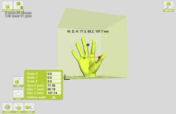 means of the triangulation scanning technique, the hand model is obtained,