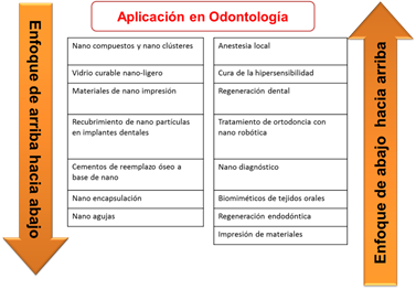 Fig. 1: Aplicaciones de la nanotecnología en odontología. Fuente: Khurshid et.al /2015)
