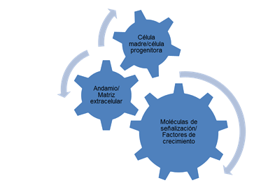 - Ingeniería de tejidos convencional específicamente relacionada con la regeneración de tejidos en odontología. Esto puede implicar la impresión celular y el ensamblaje en plantillas biológicas.