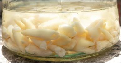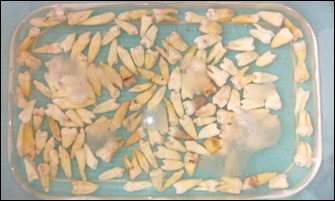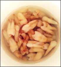 Figura 4. Piezas dentales en ácido nítrico al 5%.