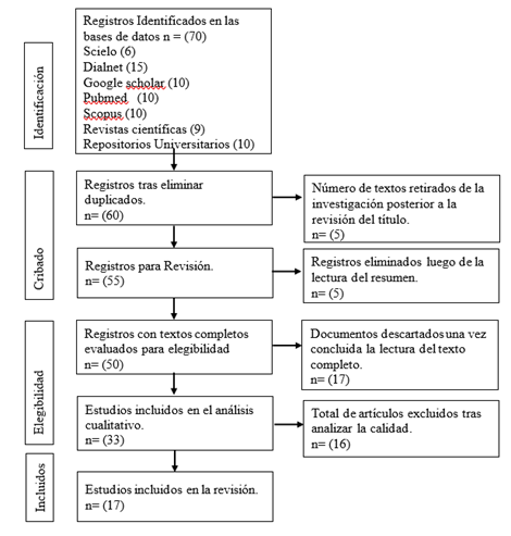 17 artículos cumplieron con los criterios de inclusión y fueron incorporados en