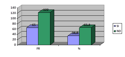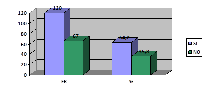 En la tabla y grafico 1, se indica que el 65,2% de los estudiantes investigado coincidieron en opinar que no poseían el habito tabáquico. Seguido de la afirmación del resto de ellos, representado por el 34,8% del total.