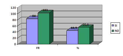 En la tabla y grafico 4, se indica que el 55,1% de los estudiantes investigado coincidieron en opinar que no consumían bebidas alcohólicas. Seguido de la negación del resto de ellos, representado por el 44,9% del total.